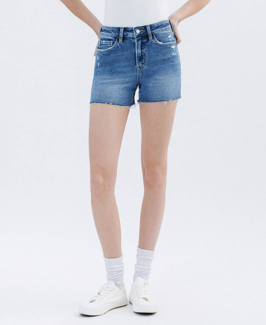 HIGH RISE RAW HEM DENIM SHORTS V3660
