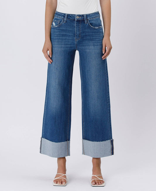 HIGH RISE CUFFED ANKLE WIDE LEG JEANS LV1530
