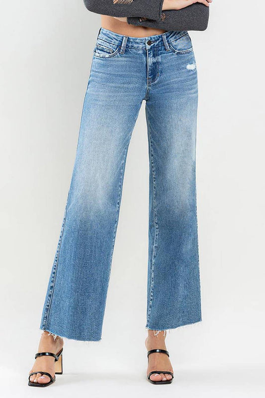 MID RISE CLEAN CUT RAW HEM WIDE JEANS T6017