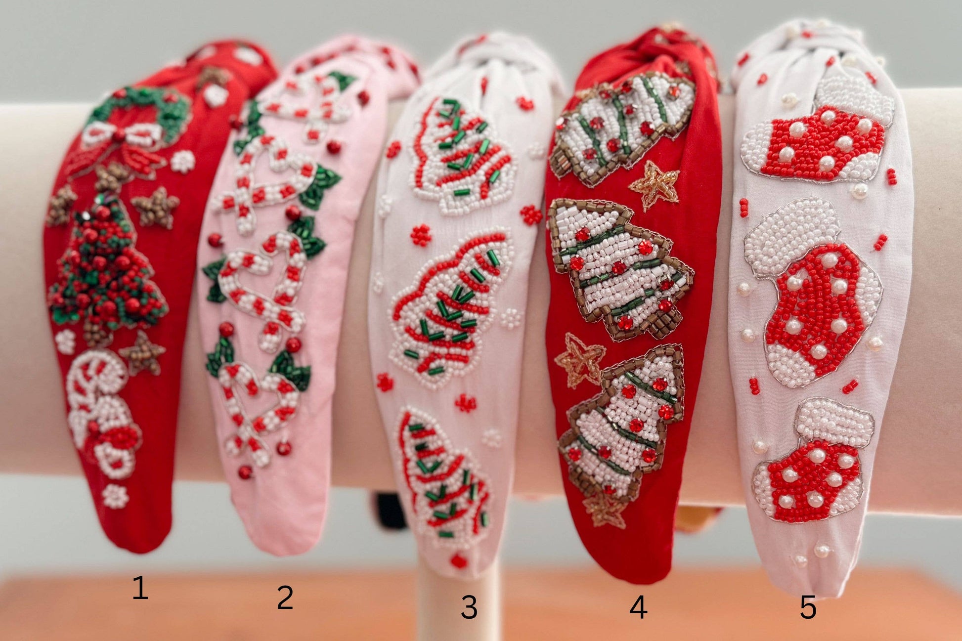 Celebrate the festive spirit in style with our enchanting Christmas headbands, hand-beaded to shimmer and shine throughout the holiday season. Each headband boasts joyful colors and intricate beadwork that captures the essence of Christmas cheer.