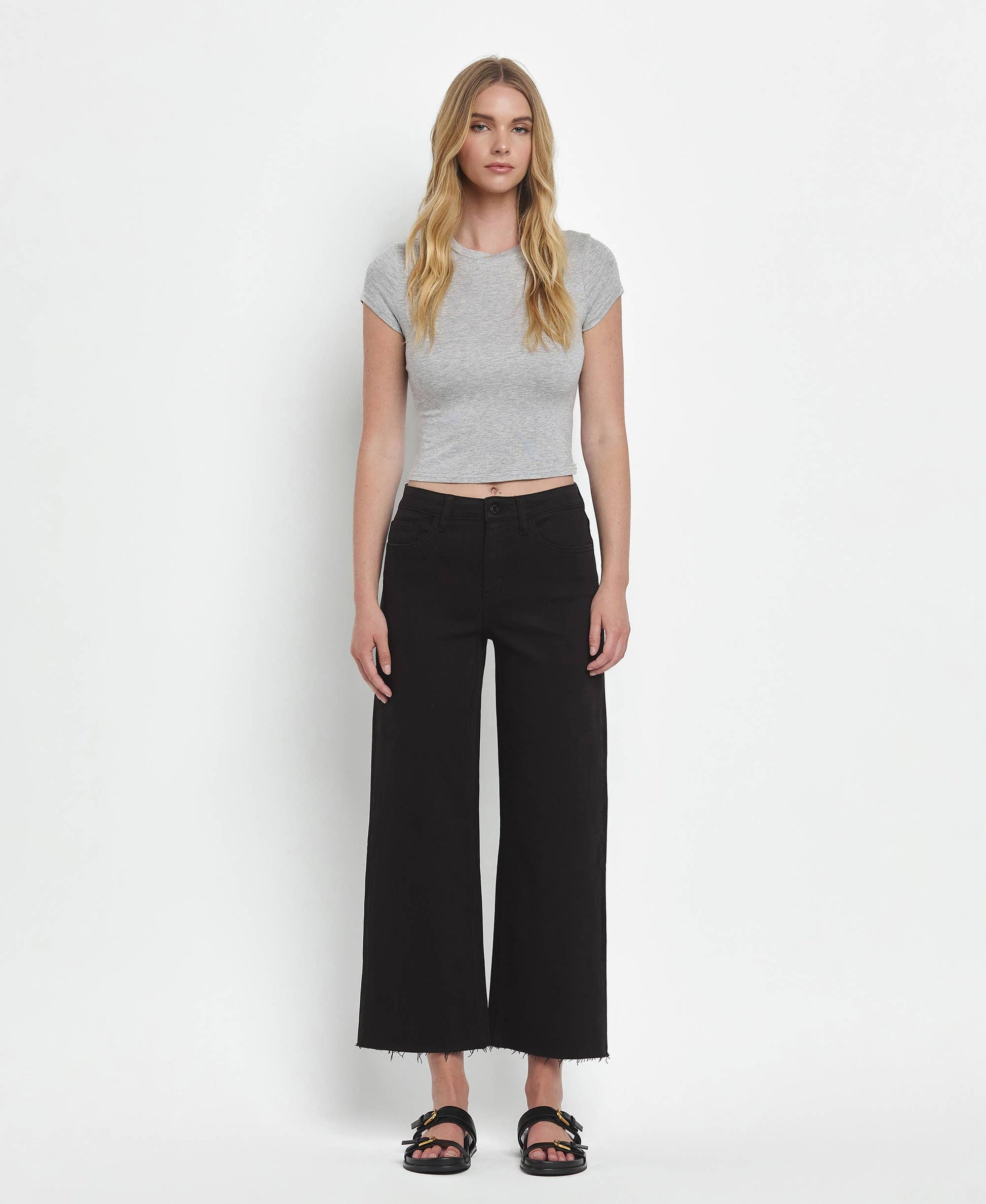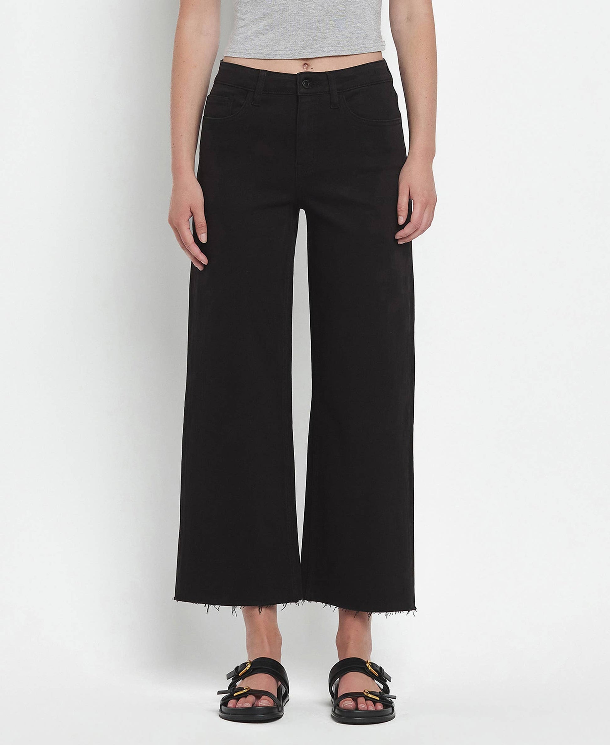 HIGH RISE CROP WIDE LEG JEANS T5894BK