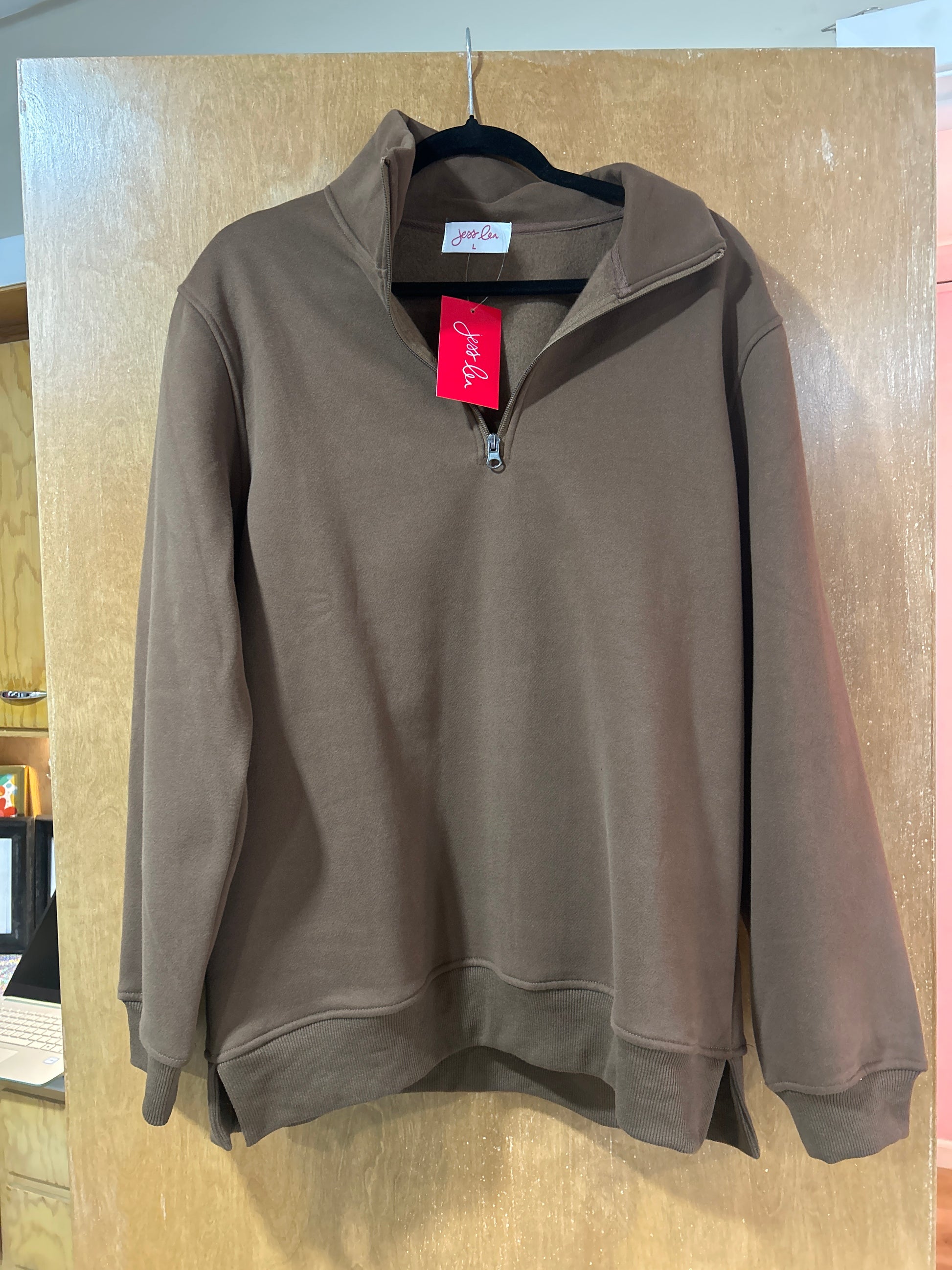 A must-have for cool weather! The McKenna Pullover is soft and comfortable, with a convenient quarter zip. Stay warm and stylish all season long. Available for a limited time only, order now before it's gone!