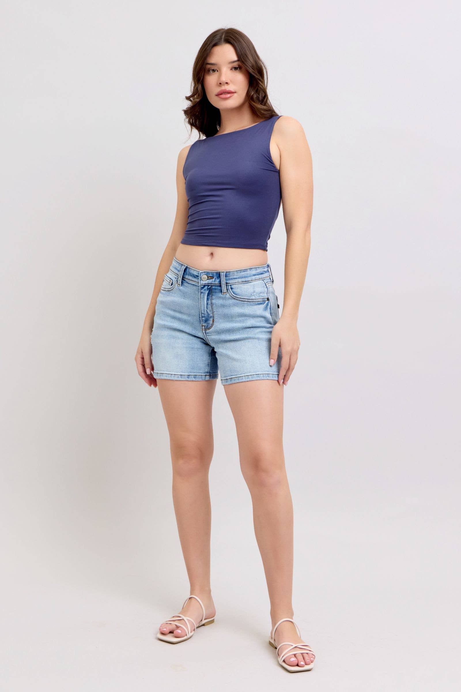 Judy Blue has done it again with their new Judy Blue Mid Rise Vintage Wash Dad Shorts. If you are a fan of dad shorts, these baddies are what you're looking for. The fit is the sweet spot between short shorts and bermuda - the perfect mid length shorts that fits every body shape.